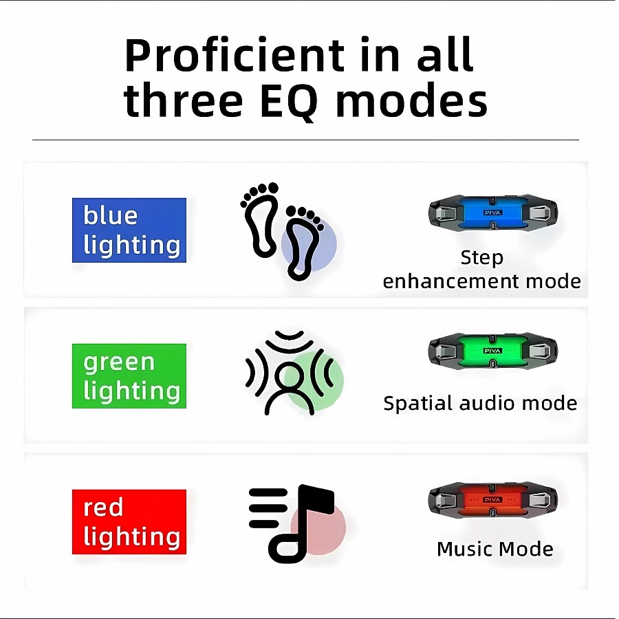 -3-Stage EQ Tuning: للتبديل السريع بين أوضاع الصوت المحسنة (على سبيل المثال ، الألعاب والموسيقى وأوضاع الأفلام) ، وتحسين أصوات معينة (مثل خطوات الأقدام في ألعاب FPS أو الجهير).