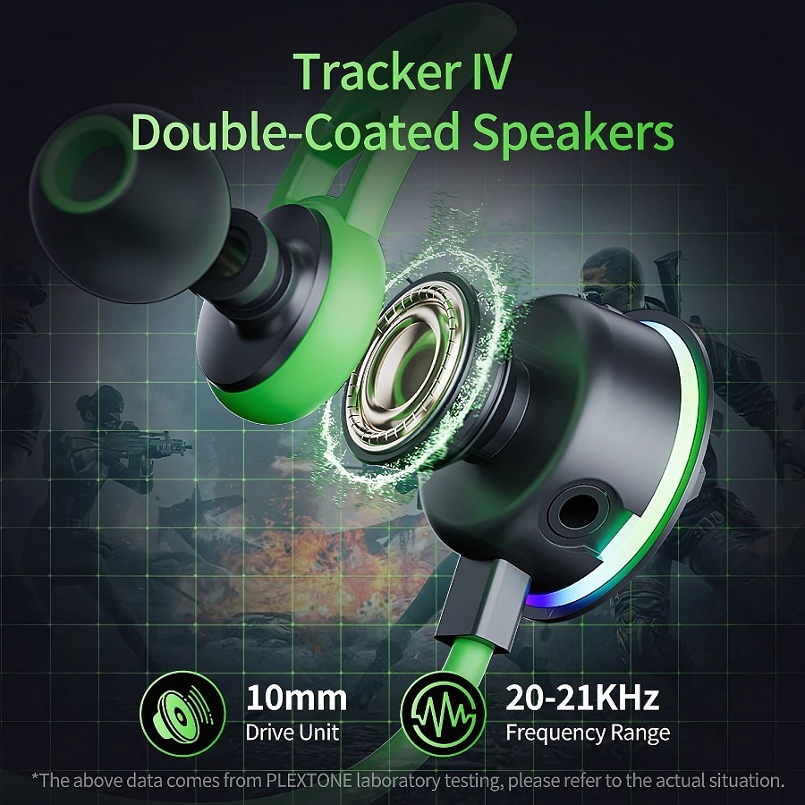 Plextone wired earphone, with an additional detachable microphone, has a Type-C port, is designed for gaming and is suitable for listening, provides clear sound and precise positioning, with interactive RGB lighting.