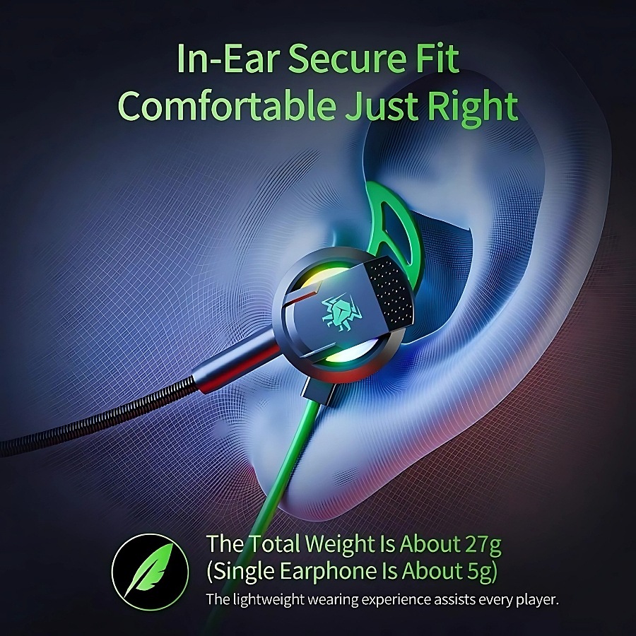 • In-line Controls• High-Definition Audio: Equipped with advanced audio drivers, deep bass, crisp highs, and balanced mid-tones, ensuring you hear every detail of your game.