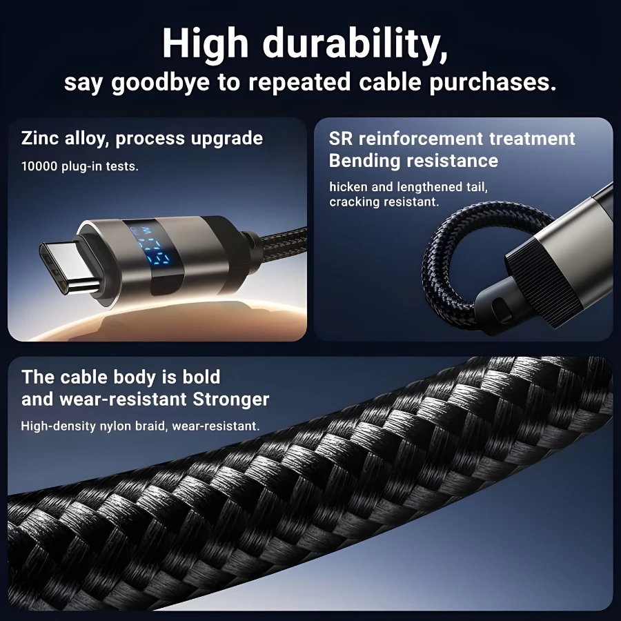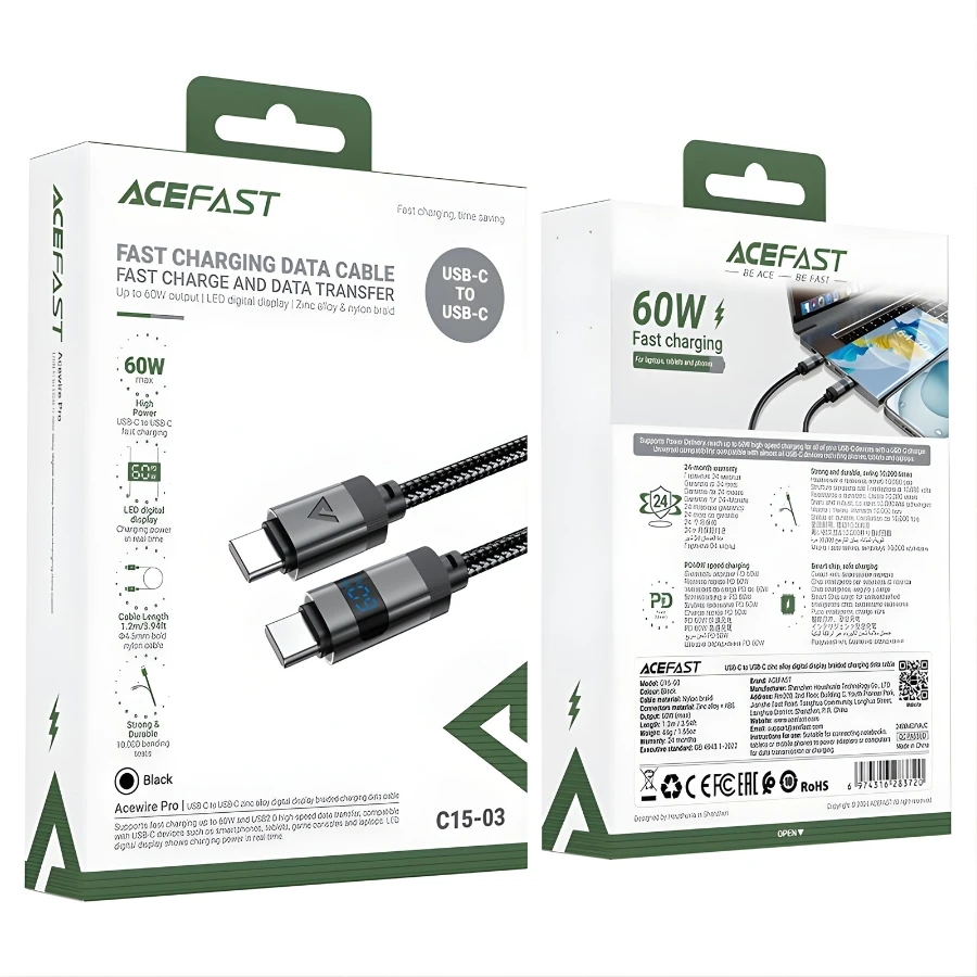 โ€ข keywords: Type-C 60W cable, LED display cable, USB-C fast charging, nylon braided Type-C, Acefast C15-03