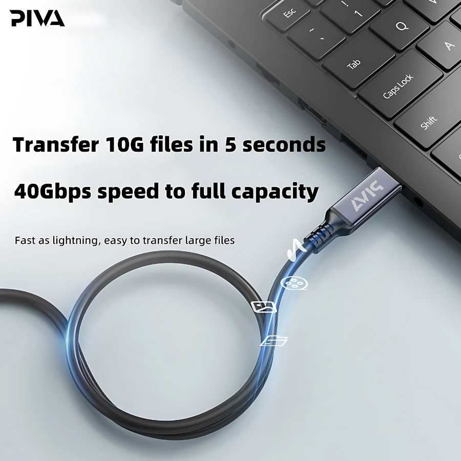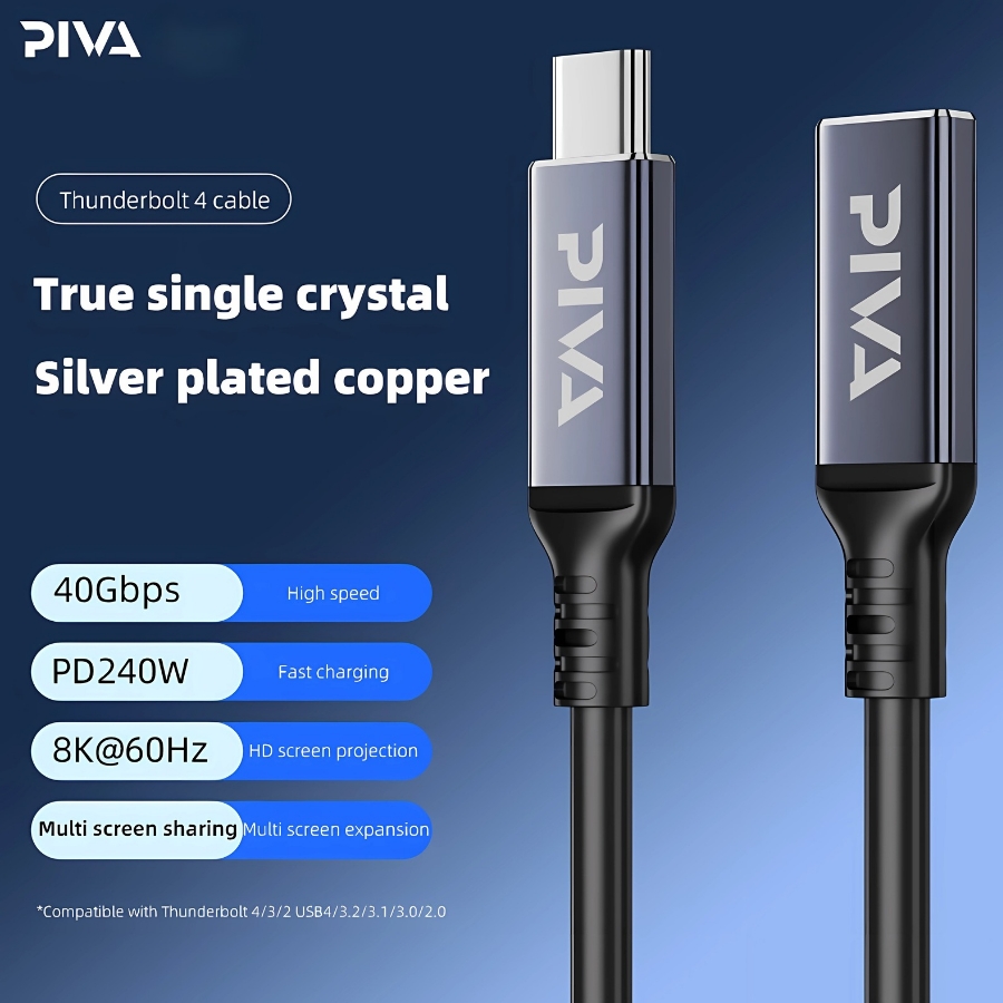 Piva Cable thunderbolt 4 , compatible with most devices that support fast charging, compatible with tablets and laptops and docks and stereos and more, supports 40GB data transfer speed, 240w fast charging, made of copper and sliver, high durability, heat resistant