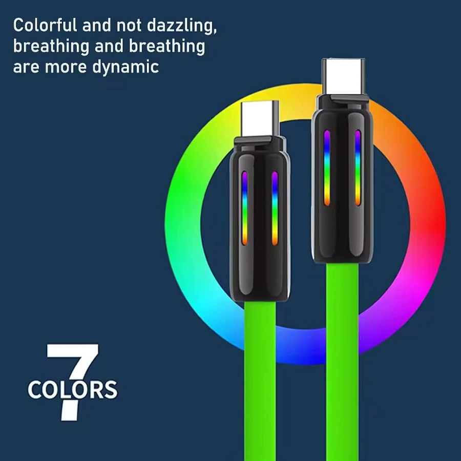 Sarafox 240W Cable, compatible with most phones that support fast charging, compatible with tablets and laptops, 1.5 meters long, supports 480 MB data transfer speed, with 7-color RGB lighting, made of soft silicone, high durability, heat resistant