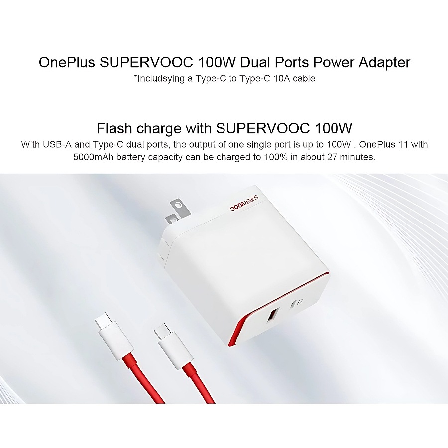 •inside box : SUPERVOOC 100W Dual Ports Power Adapter×1 // Instructions ×1 //OnePlus Type-C to Type-C Cable×1