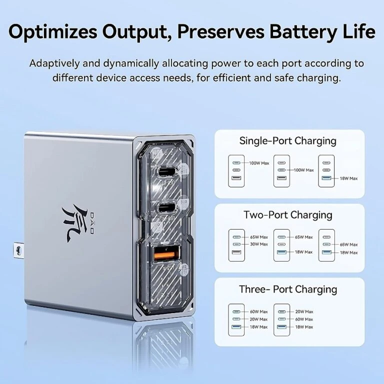 โข3-in-1 Multi-Port Charging: Includes two USB-C ports 100w and one USB-A port 18w . fast charging power.