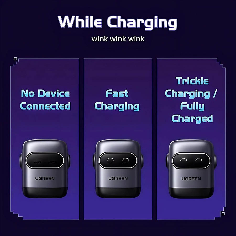 UGREEN 30W Robot Charger with Interactive Display When Charging and When Charging is Complete, GAN Technology for Safe and Smooth Charging, Comes with Type-C Port, Small Size and Easy to Carry, Supports Most Charging Protocols, Compatible with Phones, Tablets, Headphones and MacBook.