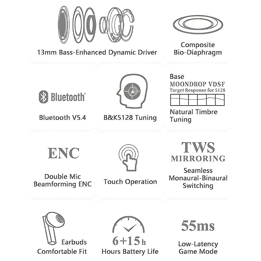 โขProduct Name: MOONDROP-BLOCK High-quality Semi-in-ear (Flat-head Earbuds) True Wireless Earphones