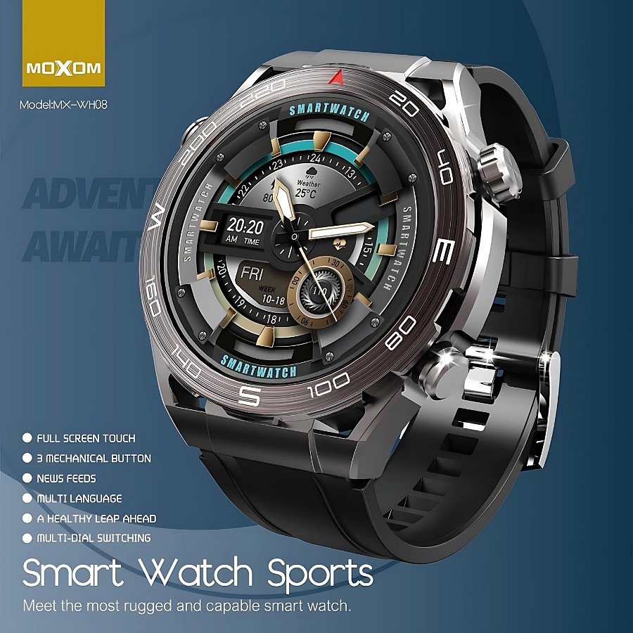 Moxom Smart Sports Watch, Multi-language, Supports Direct Calling, Receiving Calls, Receiving Messages and Notifications, Water Resistant, 1.5 Inch Screen, Battery Lasts More Than 7 Days on a Single Charge