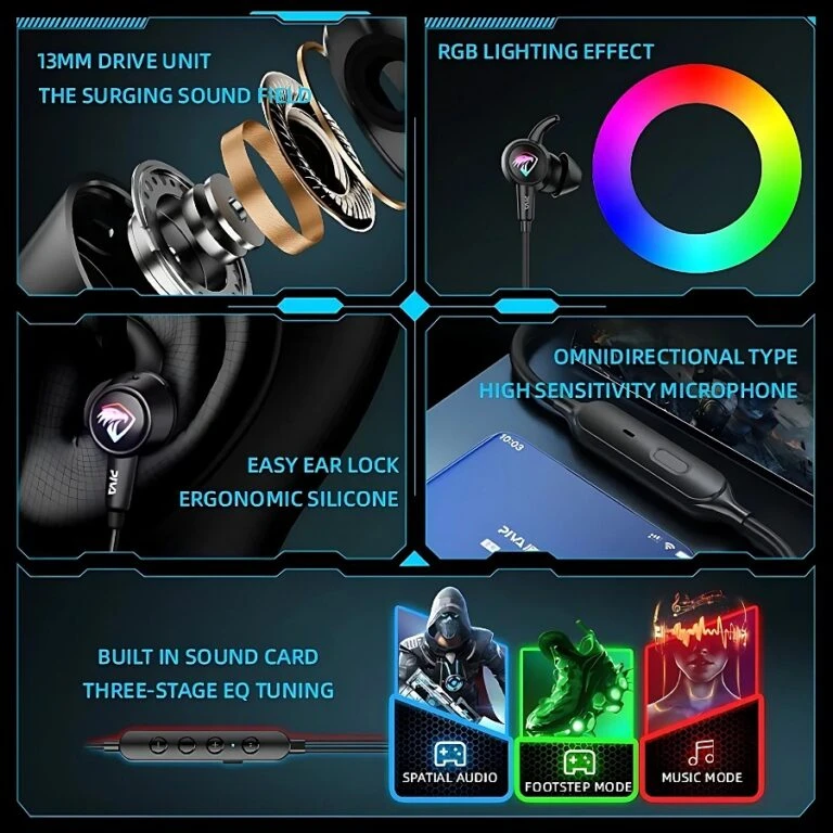 Piva wired earphone , with a Type-C port, suitable for gaming and listening, clear and pure sound, comfortable to wear, supports multiple surround sound modes, compatible with phones, computers, tablets, laptops, and PlayStations.
