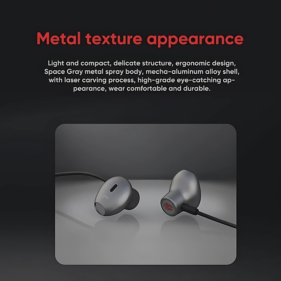 Redmagic wired earphone, comfortable metal design, suitable for gaming and listening, provides clear sound and precise positioning, compatible with all Redmagic devices and most other devices.