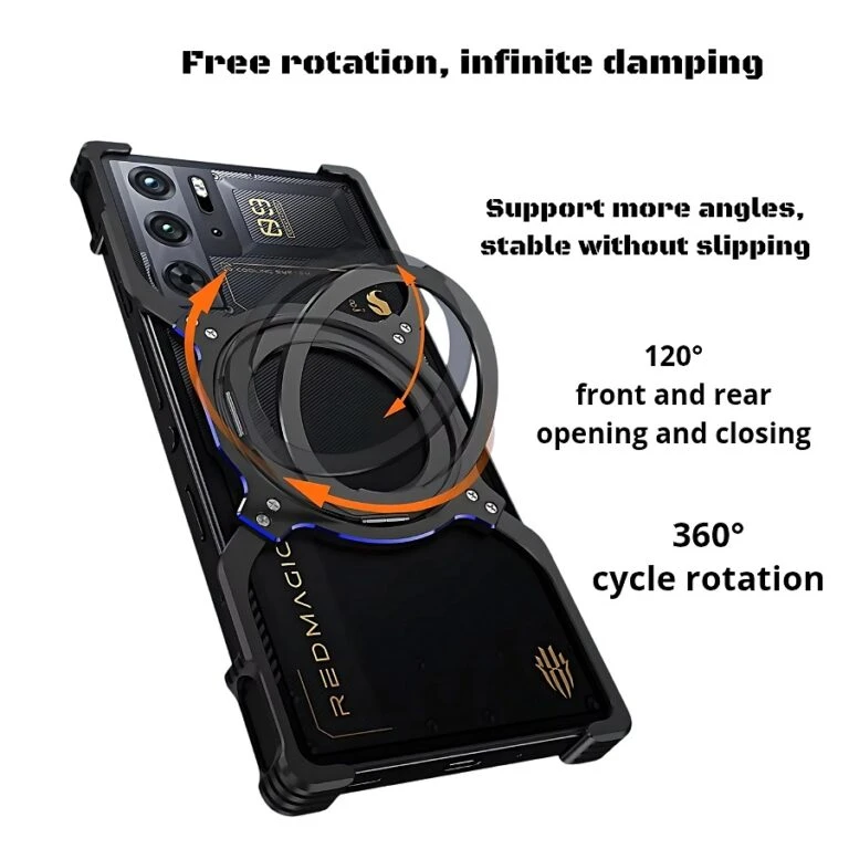 Redmagic Metal Case, made of aluminum, lightweight, with a magnetic ring for attaching a coal 360ยฐ rotatable and used as a stand, drop resistant