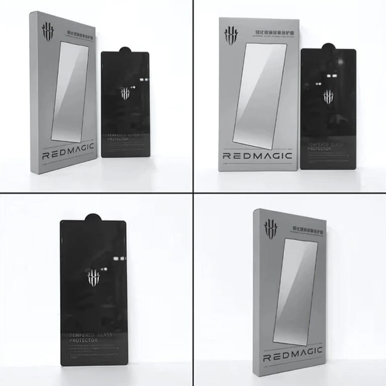 Original Redmagic adhesive, soft, very hard and scratch resistant, high touch sensitivity, maintains screen quality and colors, symmetrical edges, covers the entire screen without leaving any gap, comes with a ready template for easy installation