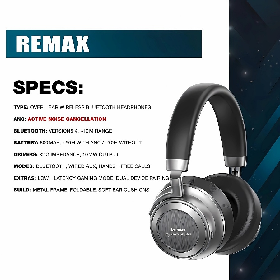 Remax RB headset, clear and pure sound, comfortable to wear and soft, good noise isolation,Bluetooth 5.4, can connect two devices in same time.