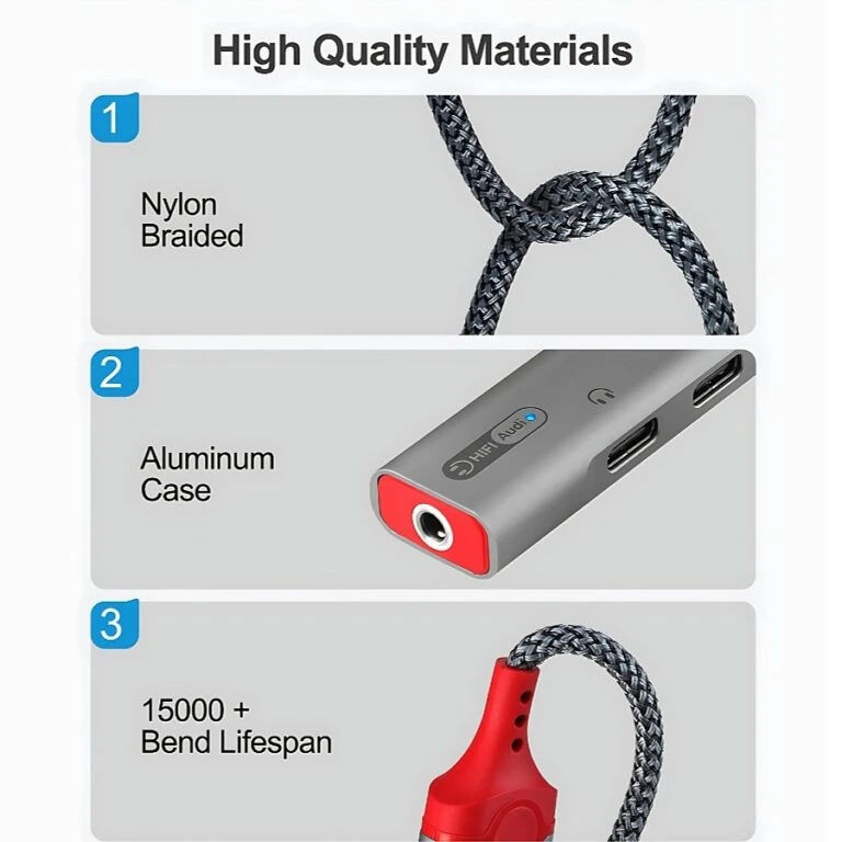 โขType-C to HiFi Aux Adapter Converter Cable + Fast Charging