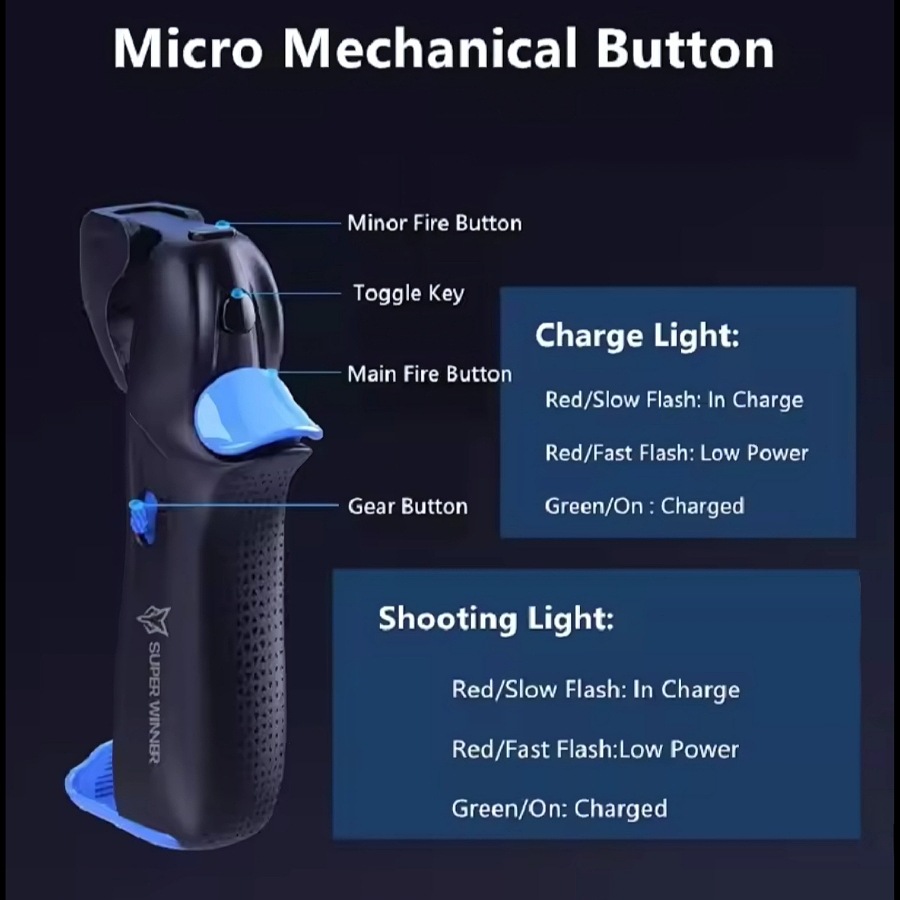 •Built-in vibration motor for a complete shooting experience. Built-in fast vibration motor for instant vibration feedback. Can be turned on or off.