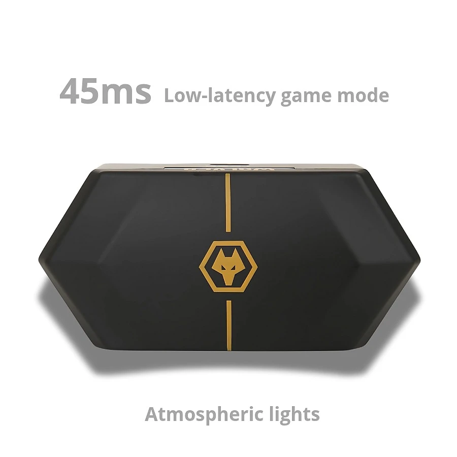 Spark Wolf Wireless earbuds, for gaming and listening, with very low latency, clear surround sound and precise positioning, large battery capacity and light weight, Bluetooth 5.0, with interactive lighting