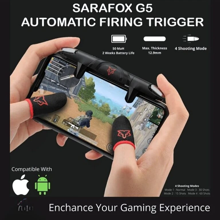 Triggers Sarafox G5, suitable for phones, multi-press adjustment in 4 modes, high response speed, lightweight, rechargeable battery, does not require Bluetooth or wireless sync
