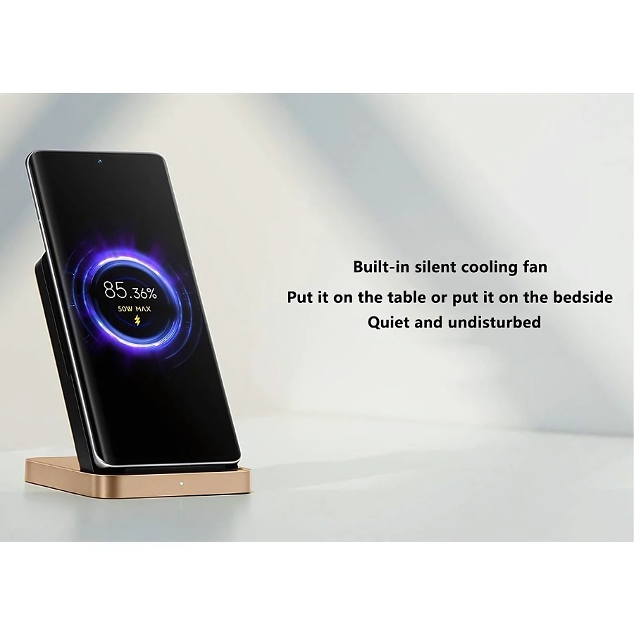 Xiaomi Wireless Charger, 50W, Compatible with most phones that support wireless charging, Contains an internal fan for cooling, Possibility of horizontal or vertical charging, Smart safety system, Comes inside the box with a 67W wired charger and a cable suitable for office and home work, Easy to use
