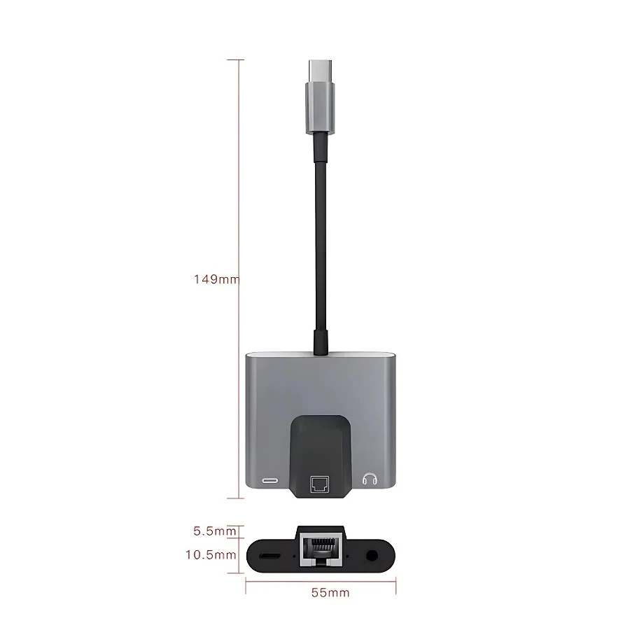 Product Features: iPhone Adapter 3in1 Converter Supports RJ45 Audio Type-c