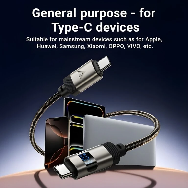 โ€ข 1.2 m length, ~44 gโ€”balanced for desk, car or bedside use.