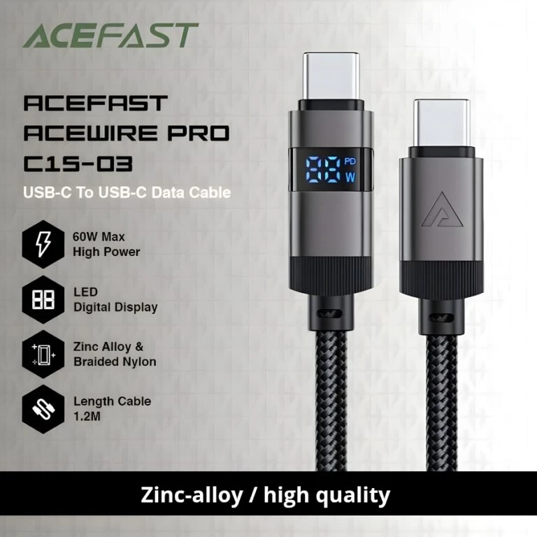 Acefast 3A Cable, compatible with all phones that support fast charging, compatible with tablets and laptops, strong and durable, supports 480Mbps data transfer speed.
