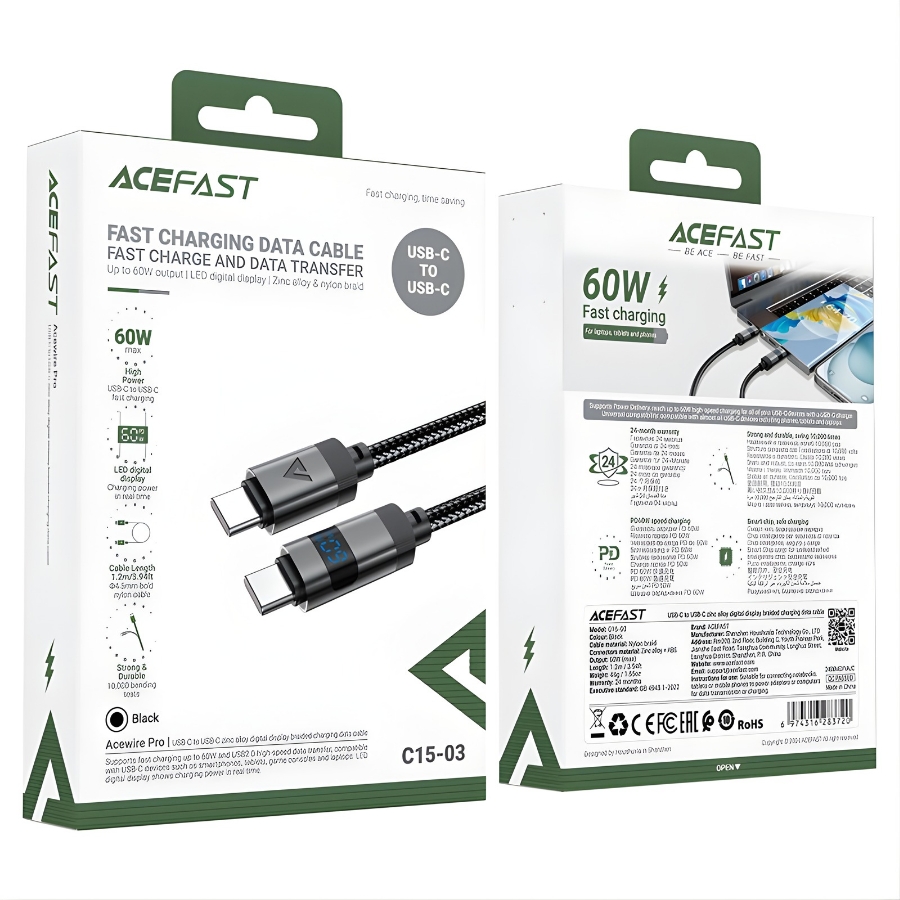 • keywords: Type-C 60W cable, LED display cable, USB-C fast charging, nylon braided Type-C, Acefast C15-03