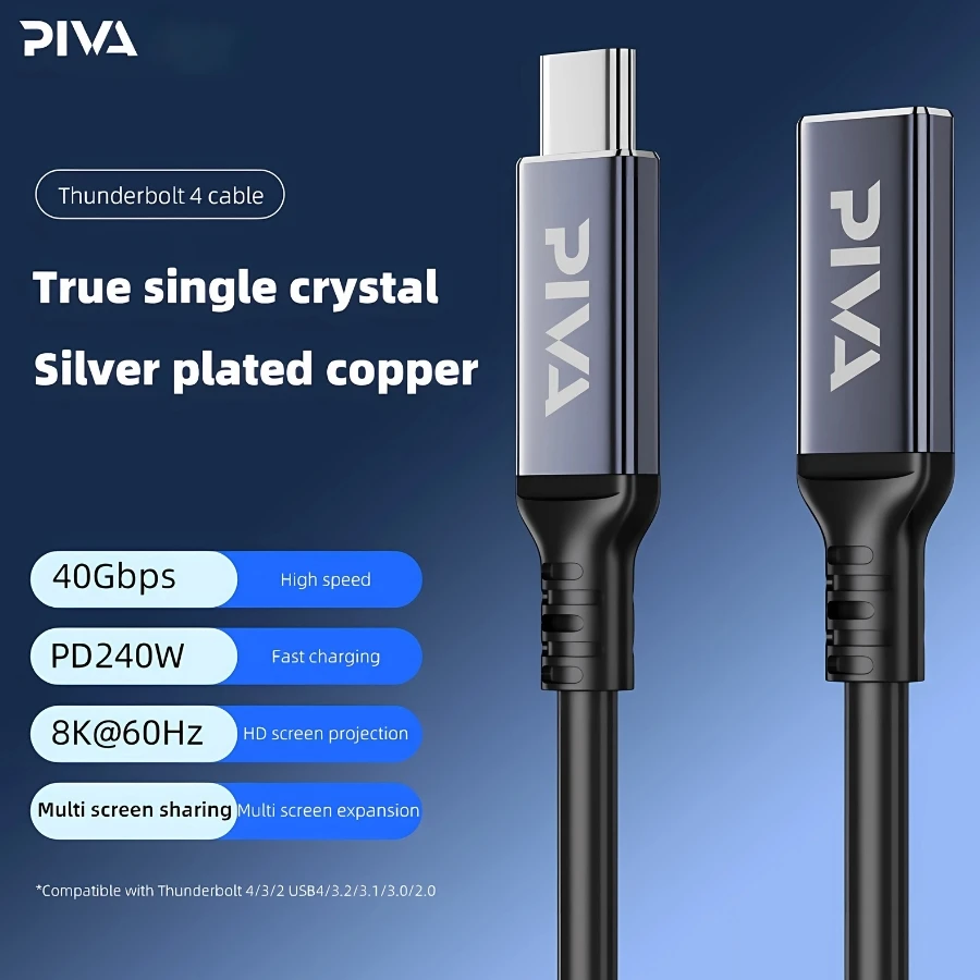 Piva Cable thunderbolt 4 , compatible with most devices that support fast charging, compatible with tablets and laptops and docks and stereos and more, supports 40GB data transfer speed, 240w fast charging, made of copper and sliver, high durability, heat resistant