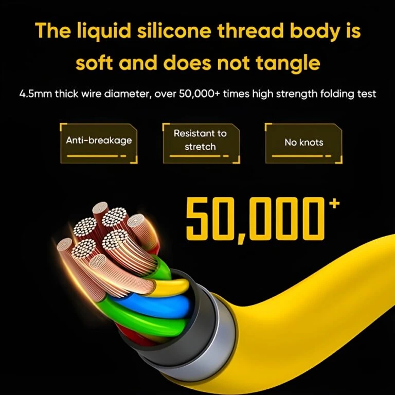 โขThe cable features a built-in smart E-MARK chip, providing intelligent power regulation to ensure safe and optimal power distribution between the device and charger. Made of high-quality silicone, giving it a soft touch with tangle resistance. With a wire thickness of 4.5mm, making it durable and capable of withstanding heavy use.