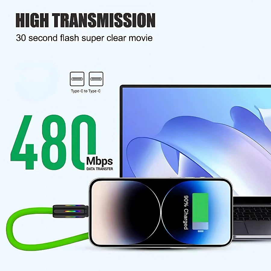 . The Type-C silicone fast charging cable is not only good-looking, but also fast, high-speed transmission, flash transmission of ultra-clear movies