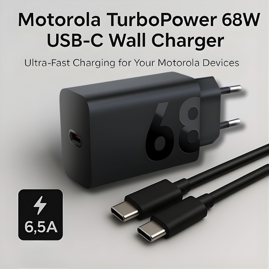 Motorola’s premium charger, with GAN technology, offers 68W power and is compatible with most devices, laptops, tablets, and more. It supports all charging protocols, providing safe and smooth charging.