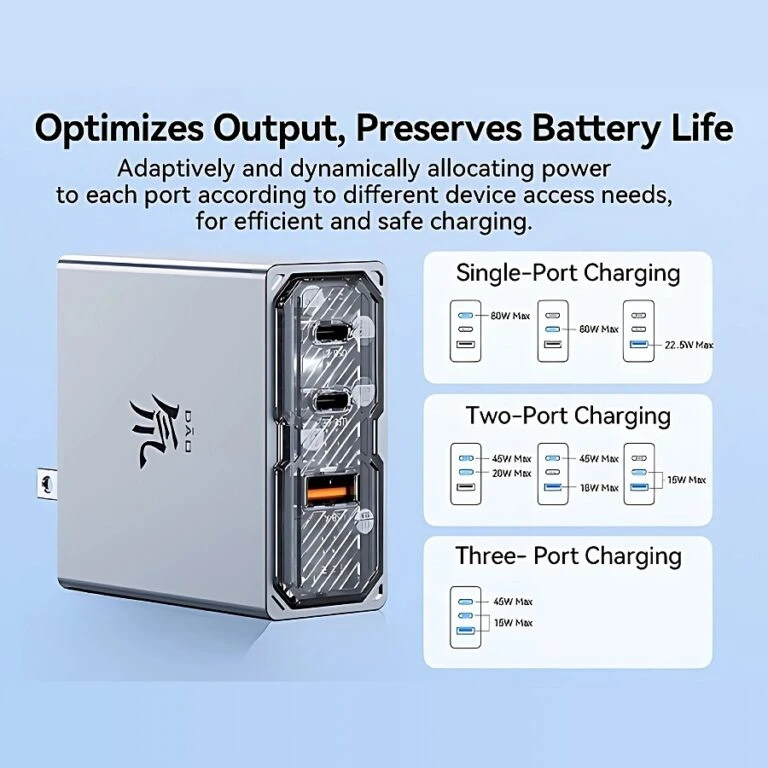 โข3-in-1 Multi-Port Charging: Includes two USB-C ports 80w and one USB-A port 22.5w . fast charging power.