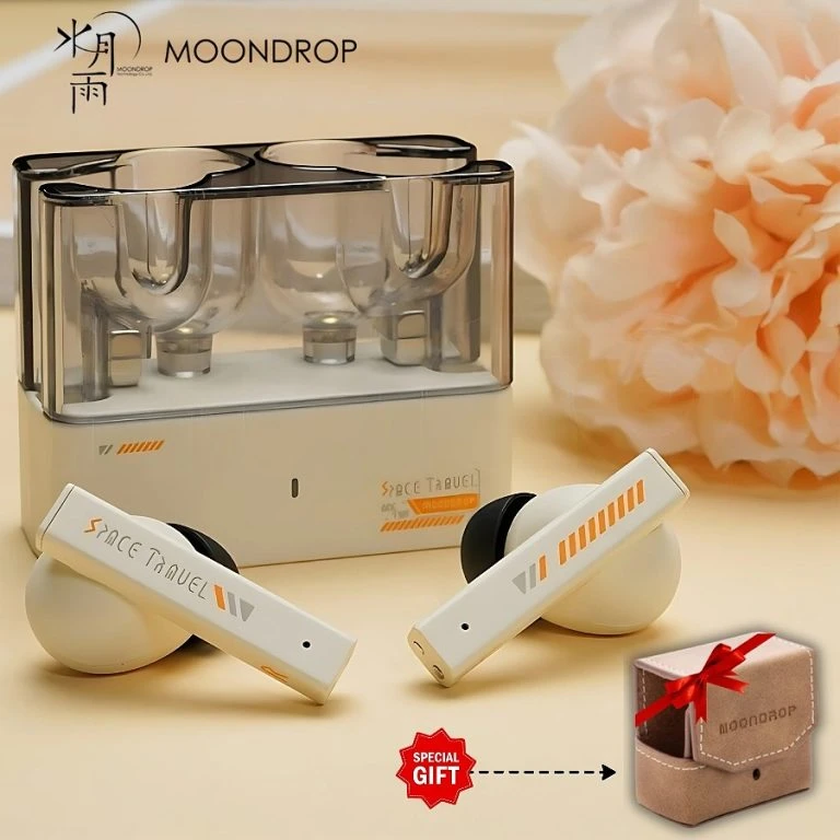 Moondrop wireless earbuds, designed for calls and listening, with a high isolation rate, pure and clear sound with the ability to control it through the application, 3 modes to control the type of amplification, large battery capacity and light weight, Bluetooth 5.3, with noise isolation feature