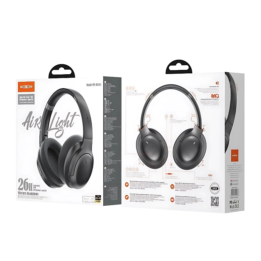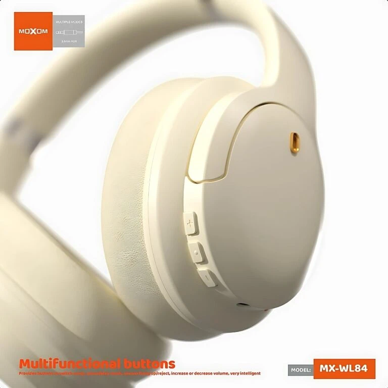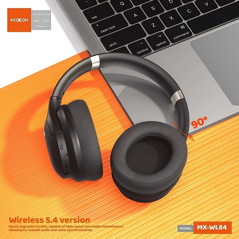 Moxom wl83 headset, clear and pure sound, comfortable to wear and soft, noice cancellations, Bluetooth 5.3, foldable, with control buttons.