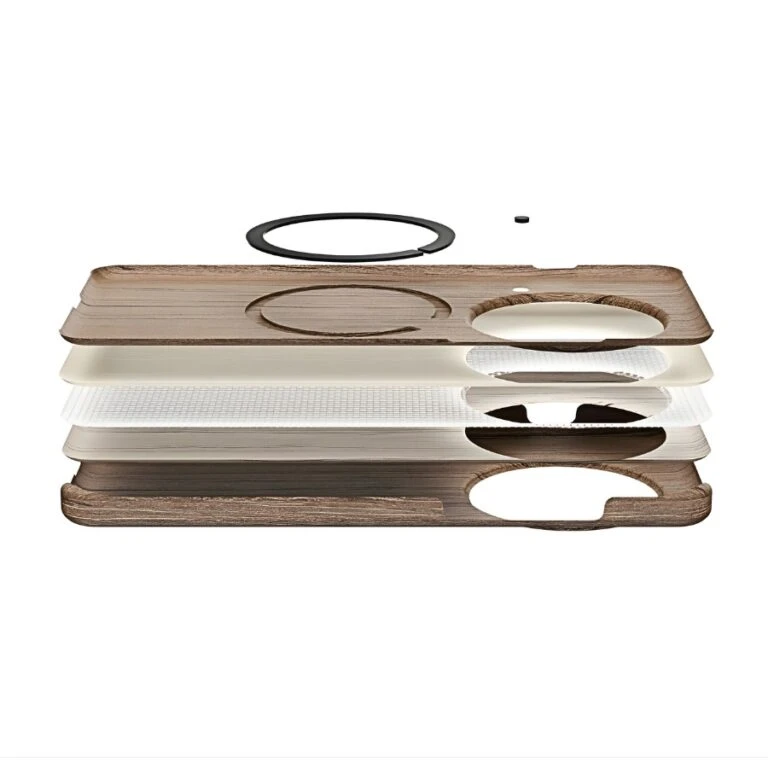 OnePlus 13 Wood Grain Magnetic Case is crafted with one-of-a-kind wood grain for you and you alone. Made of silver PET, the logo of OnePlus is the highlight of the design, shining subtly with dignity and quality.
