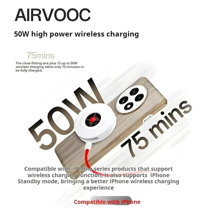 โข AIRVOOC 50W, Perfect support for OnePlus 13 50W wireless charging, fully charge your phones in just 75 minutes.