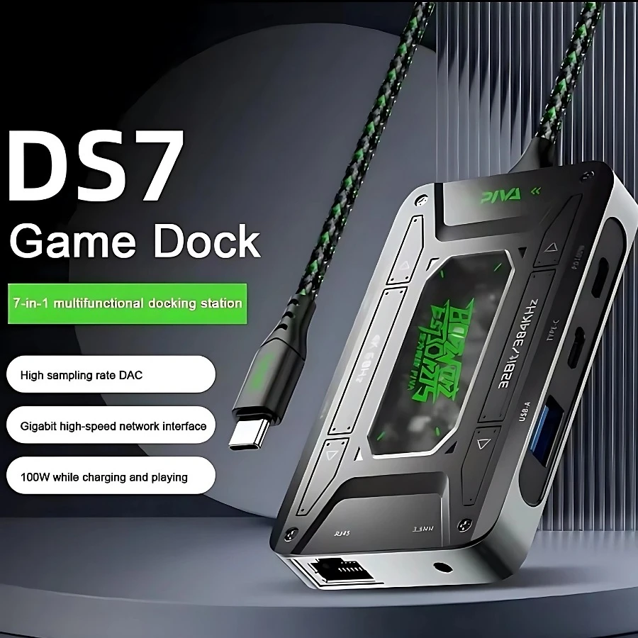 ** 1. Multi-functional Interface: The piva DS7 Type-C Docking Station has various interfaces, including USB 3.1 Gen1 5Gbps transfer rates, HDMI 2.0 4K 60Hz output, Ethernet RJ45 network port supporting 1000/100/10Mbps speeds, and 3.5mm audio interface with 32Bit/384KHz support and more , allowing for quick connection to multiple devices and fulfilling diverse user needs.
