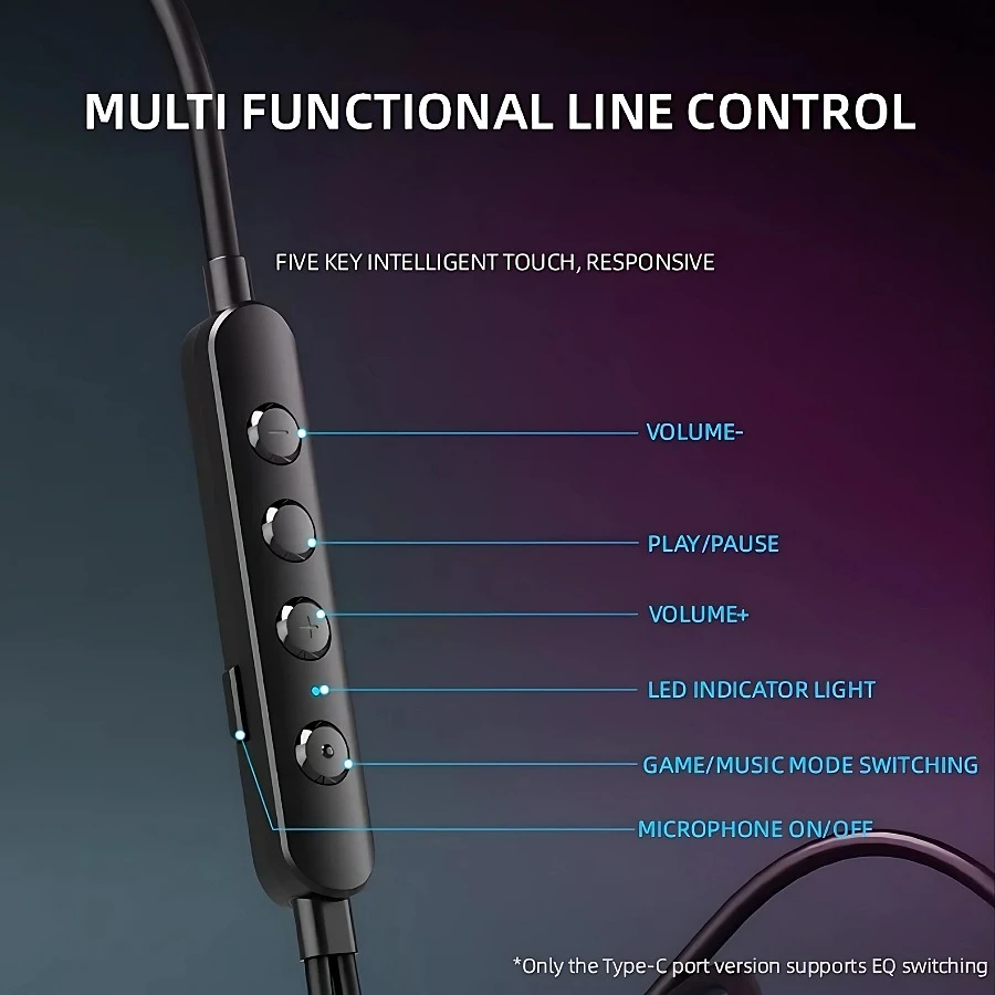 Piva wired earphone , with a Type-C port, suitable for gaming and listening, clear and pure sound, comfortable to wear, supports multiple surround sound modes, compatible with phones, computers, tablets, laptops, and PlayStations.