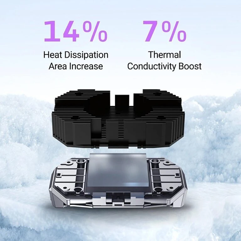 RedMagic 6 Smart Cooler, monitors device temperature and regulates cooling, clips, RGB Lighting Effects, 3D silent airflow,30W Tri-Mode Engine, and can be controlled via the Gober app.