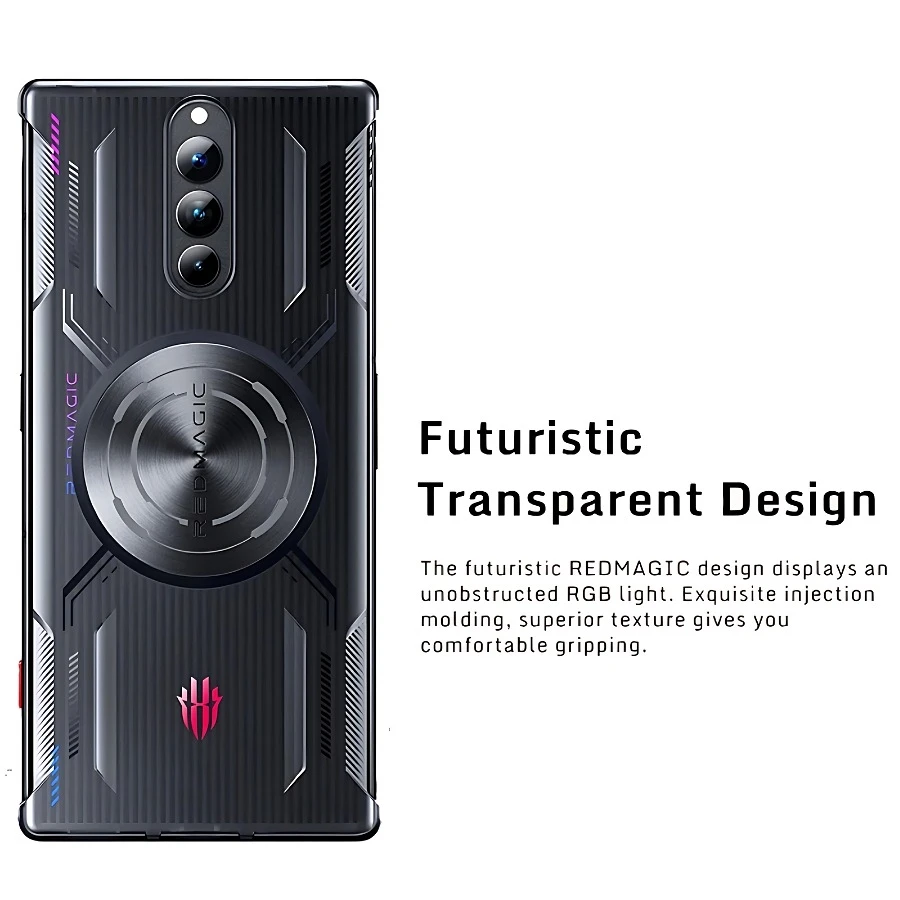 Original Redmagic Case for Redmagic 8 Pro Series, Hard Silicone, Magnetic Steel Ring for Cooling, Drop Resistant, Side Opening for Heat Dissipation.