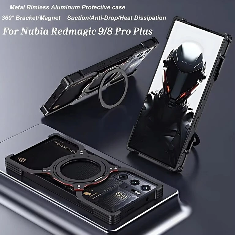 Redmagic Metal Case, made of aluminum, lightweight, with a magnetic ring for attaching a coal 360ยฐ rotatable and used as a stand, drop resistant