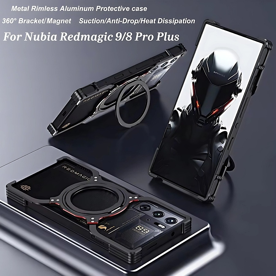 Redmagic Metal Case, made of aluminum, lightweight, with a magnetic ring for attaching a cooler, 360° rotatable and used as a stand, drop resistant