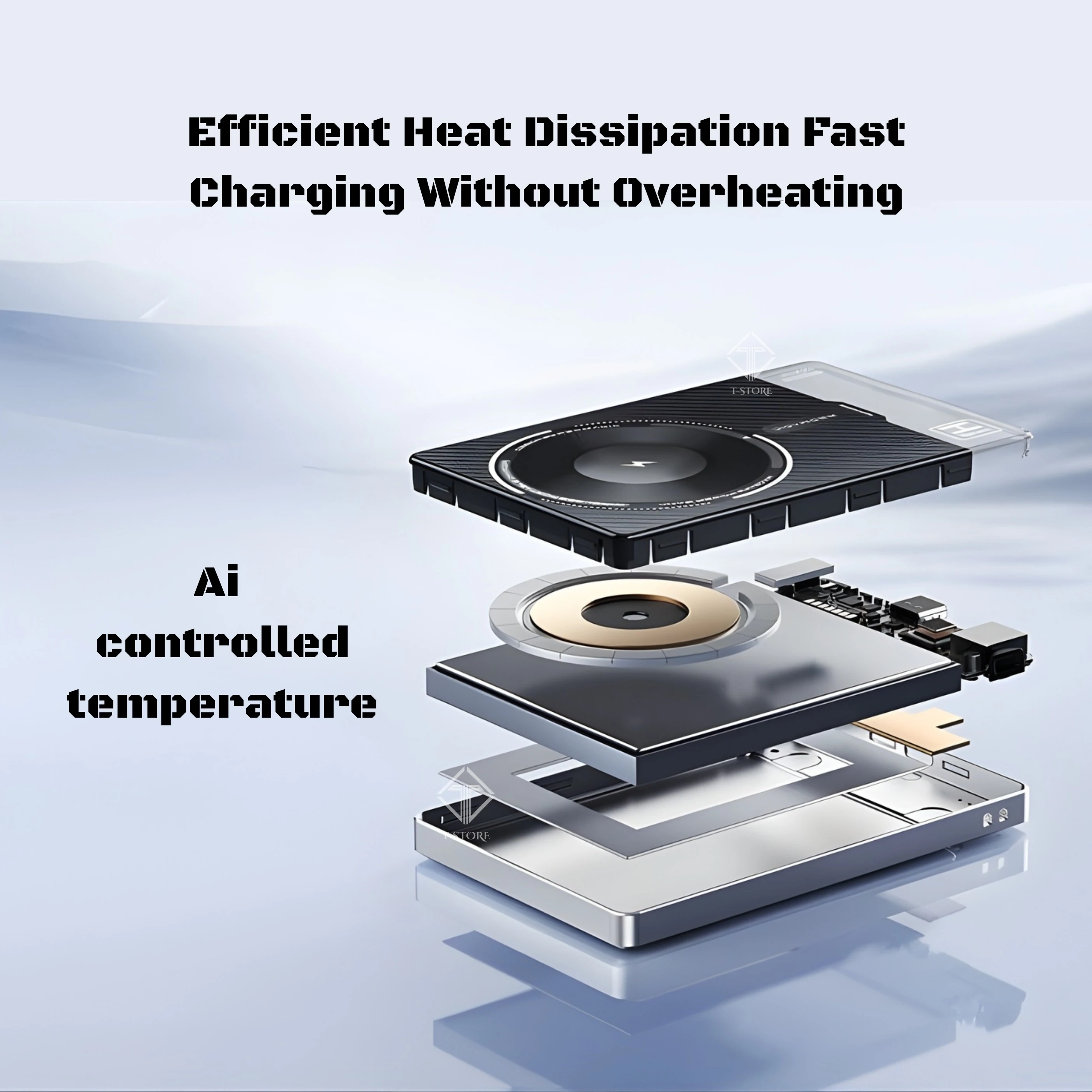 Smart Cooling System โ€“ 5-layer dissipation + AI temperature control for safe, cool fast charging.