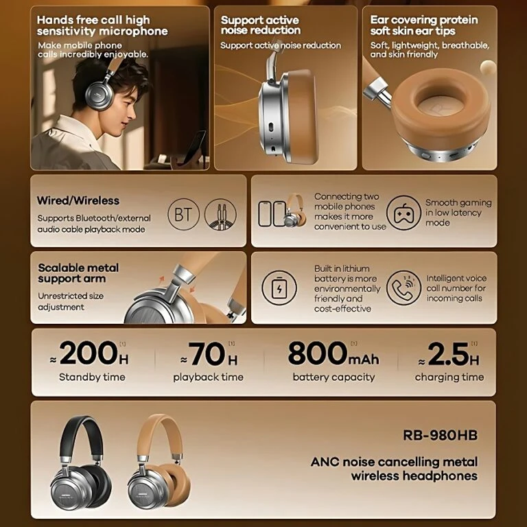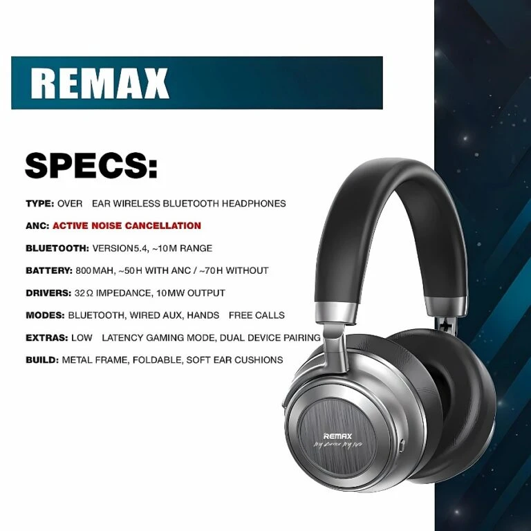 Remax RB headset, clear and pure sound, comfortable to wear and soft, good noise isolation,Bluetooth 5.4, can connect two devices in same time.